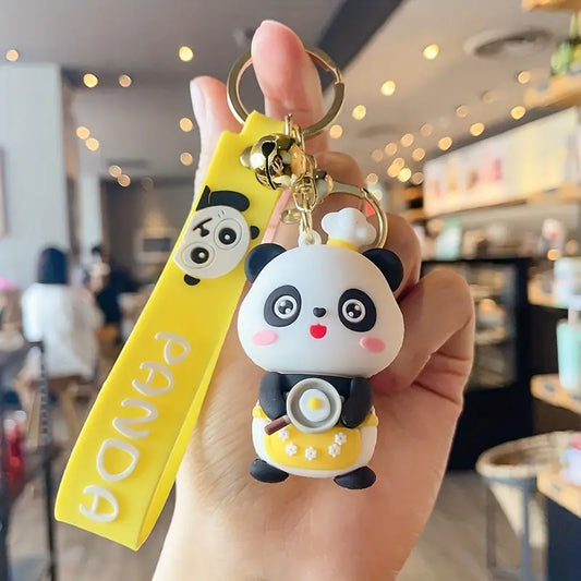 Cute Barista Panda Yellow Keychain | Premium | Lanyard Keychains |