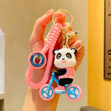 Pink Panda On Cycle Keychain | 3D Lanyard Keychain | Silicone | Premium |