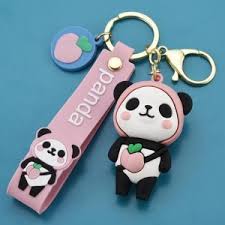 Pink Panda Silicon Keychain | Model A | 3D Lanyard Keychain | Premium |