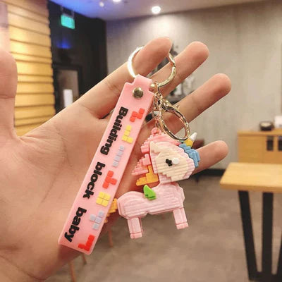 Pink Unicorn Lego Themed Keychain | 3D Lanyard Keychain | Silicone | Premium |