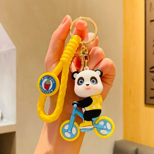 Yellow Panda On Cycle Keychain | 3D Lanyard Keychain | Silicone | Premium |