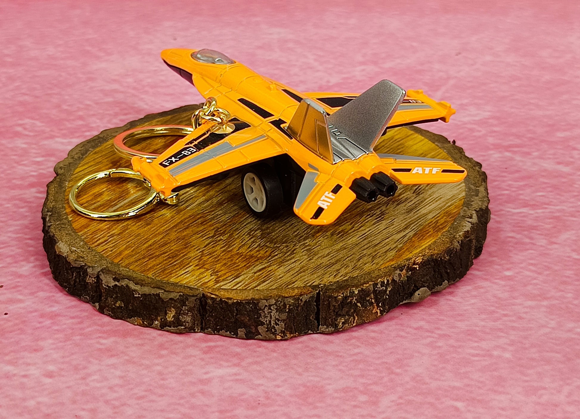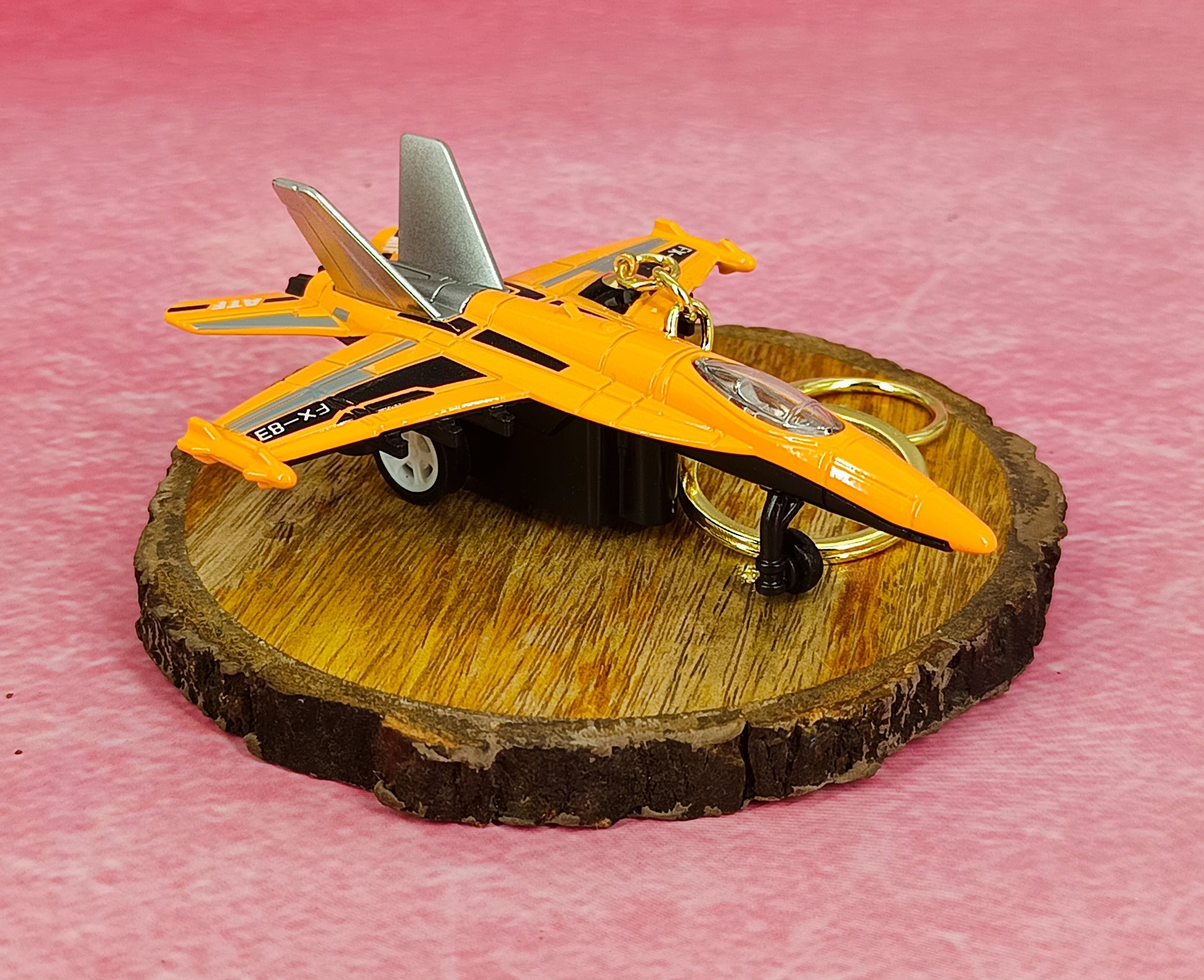FX-38 Military Yellow Fighter Jet Keychain | Double Moveble Wing | With Golden Keyring|