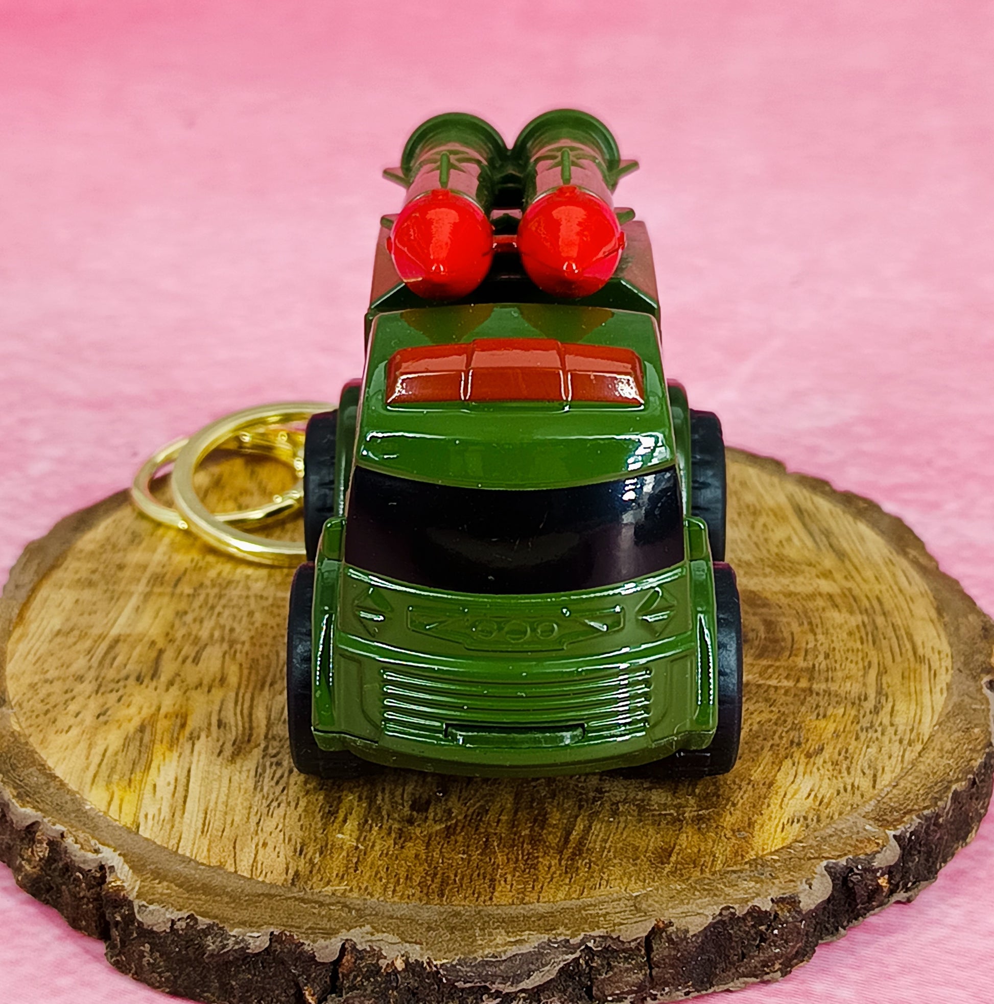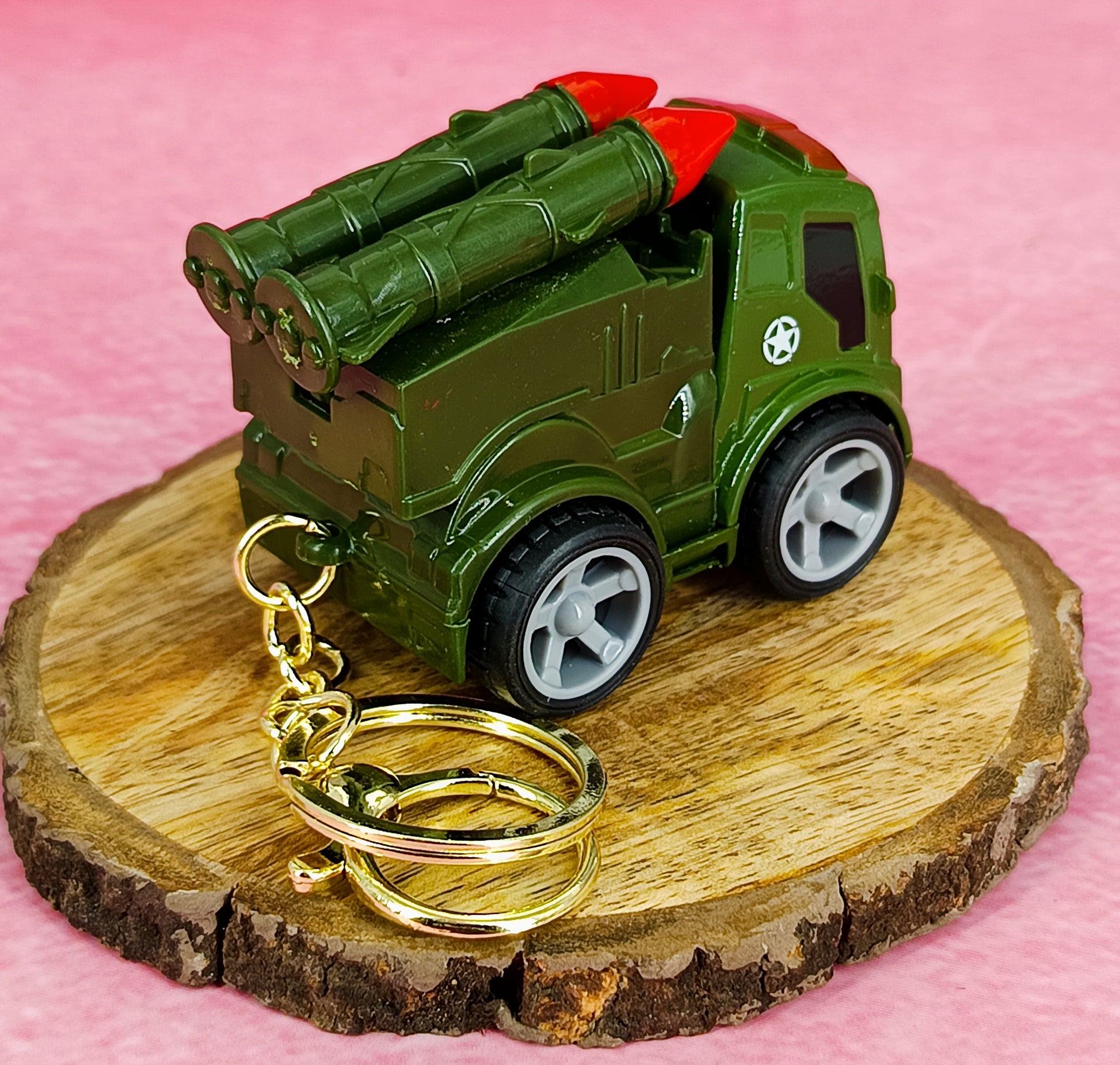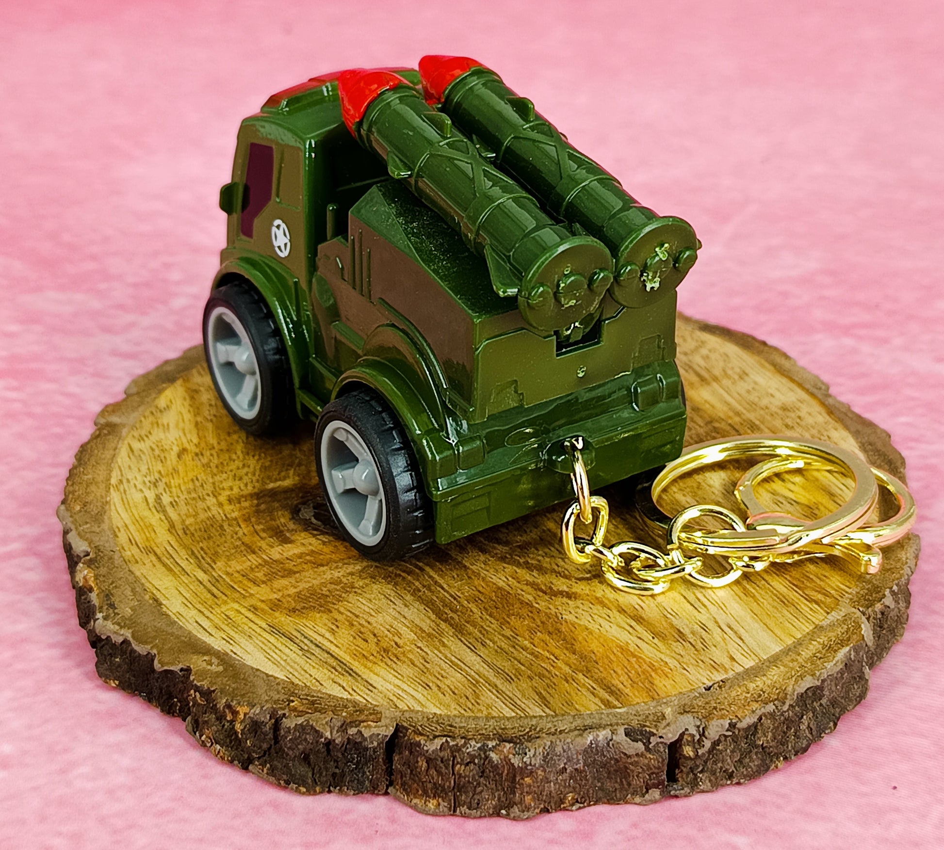 Green Military Truck Keychain | Two Ballistic Missiles | With Golden Keyring Keychain |