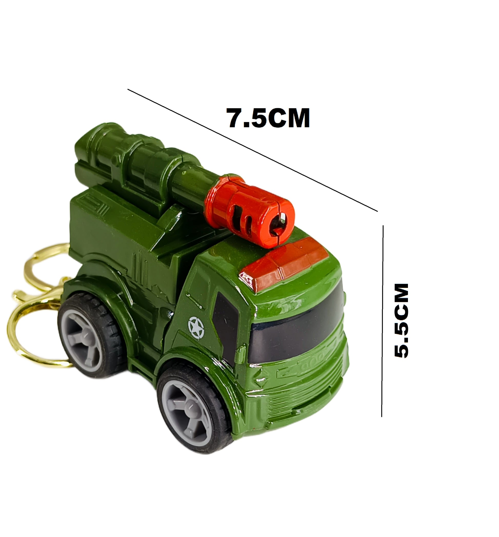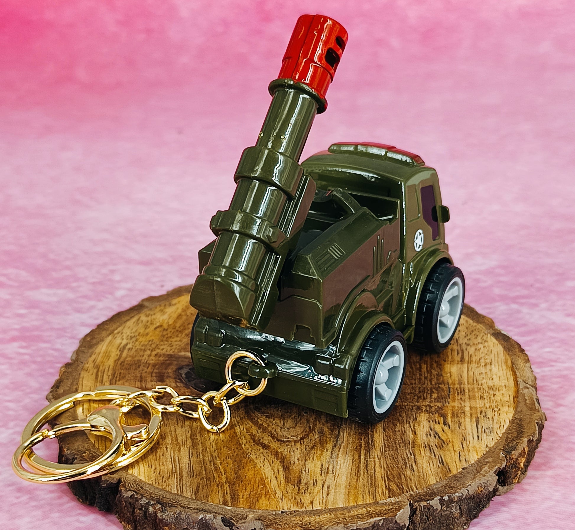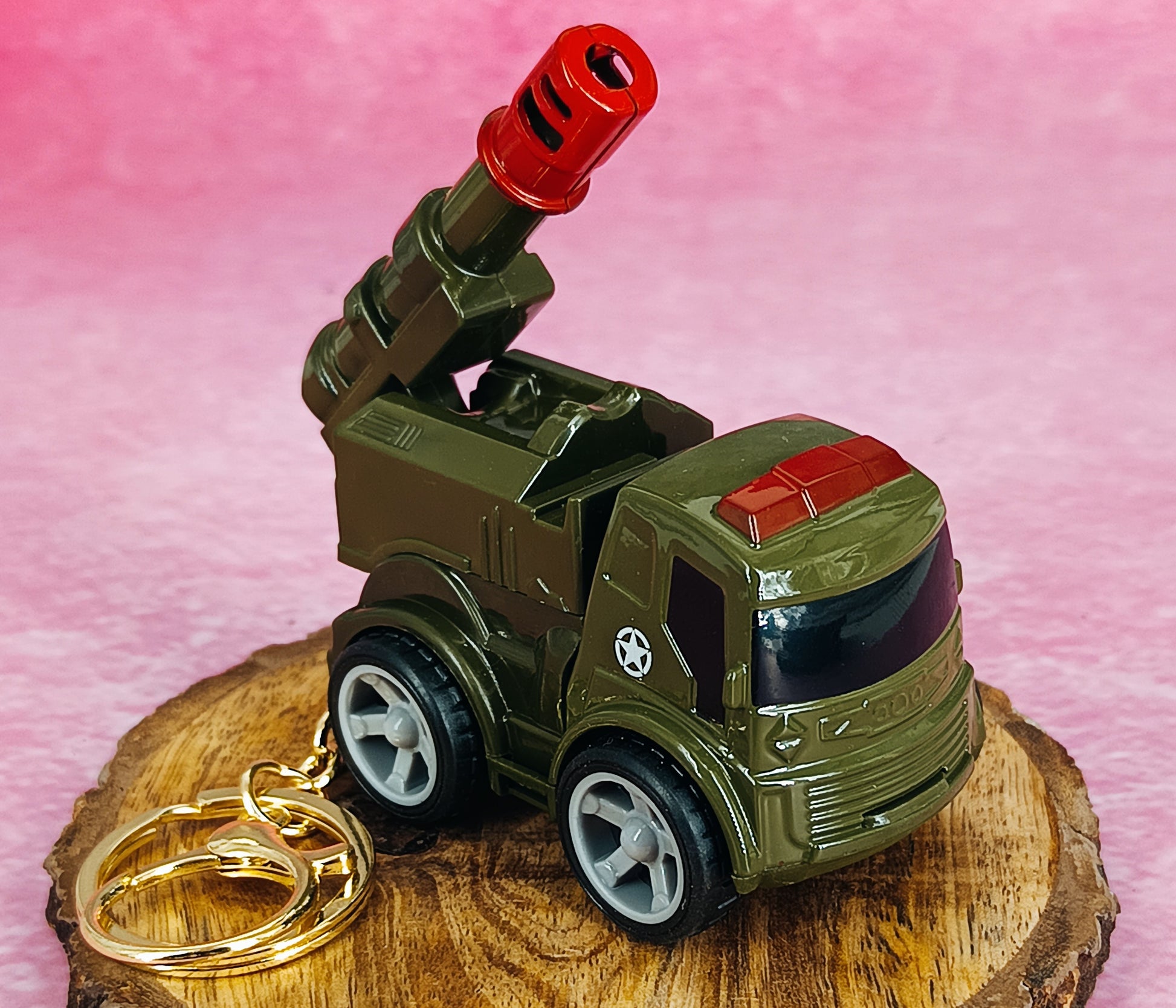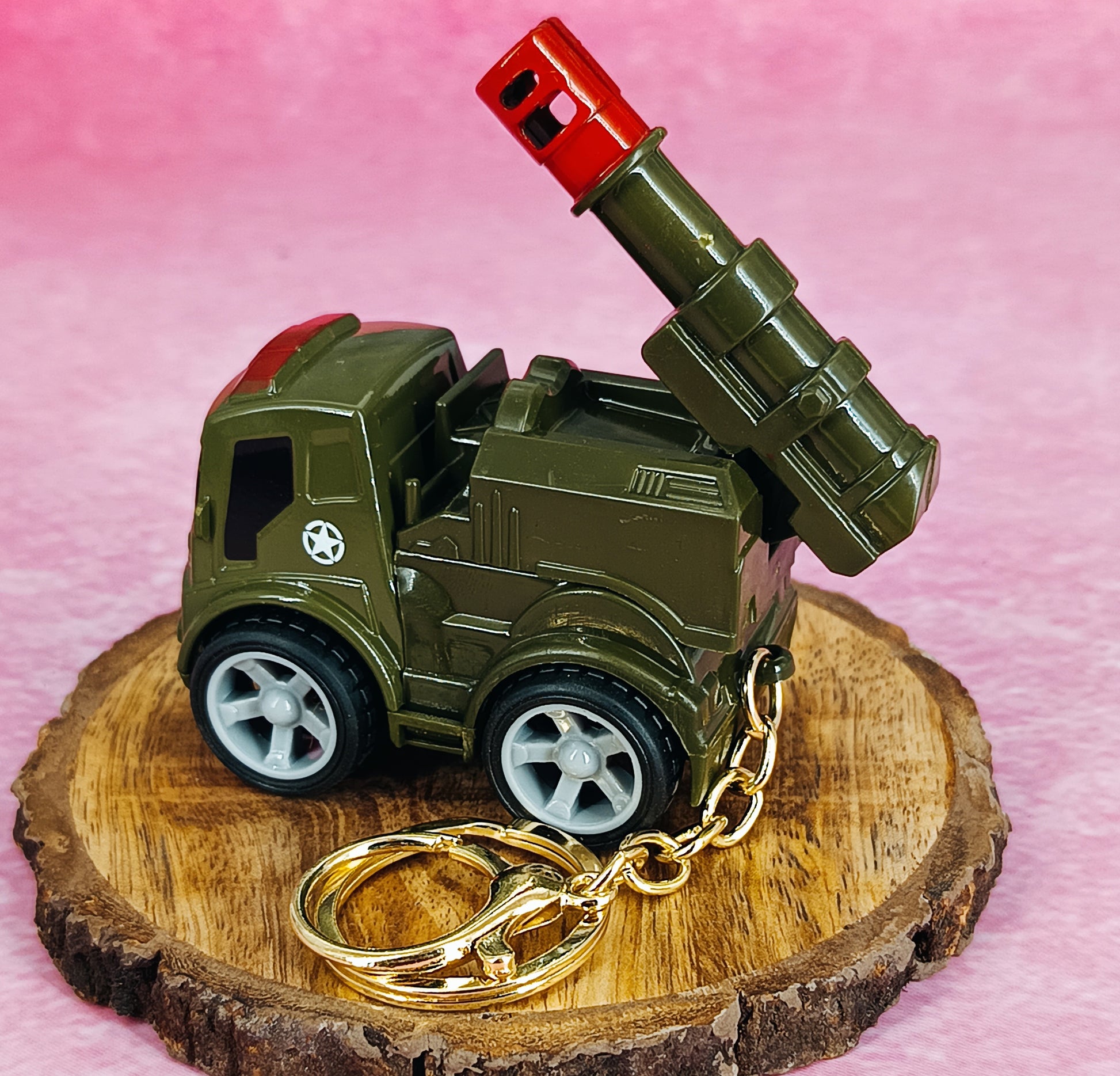 Militey Green Truck With Moveble Belistic Model 2 4Cm With Golden Keyring Keychain