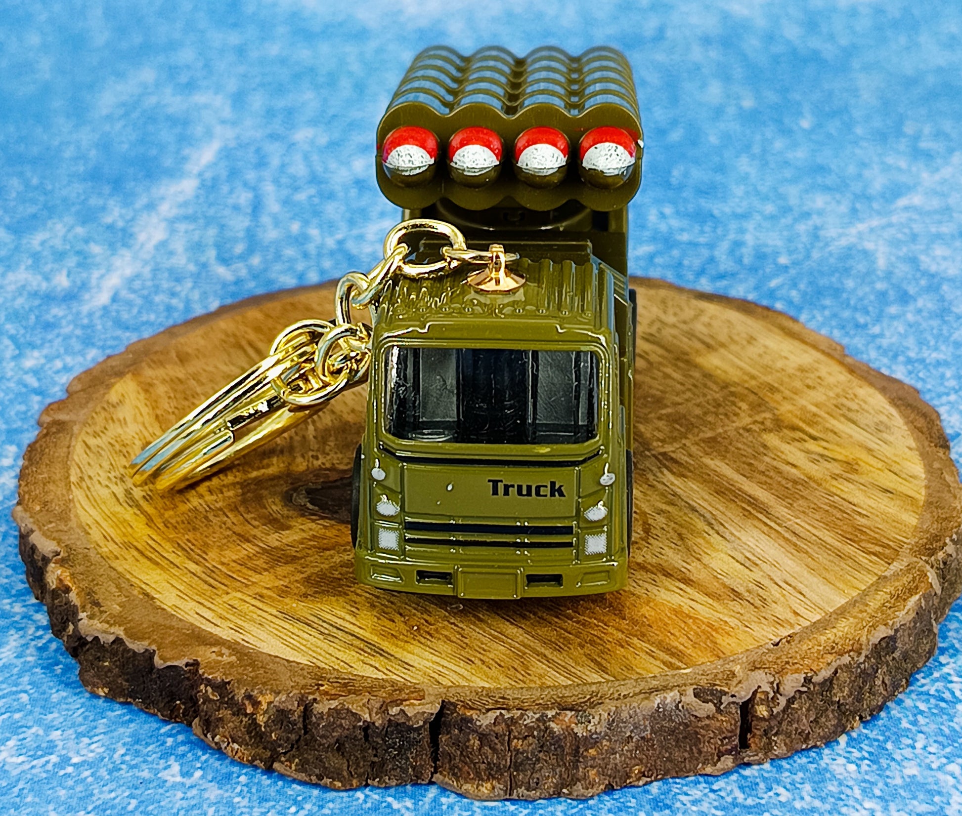 Military Ballistic Missile Truck Keychain | Golden Keyring Keychain | 4 Cms |