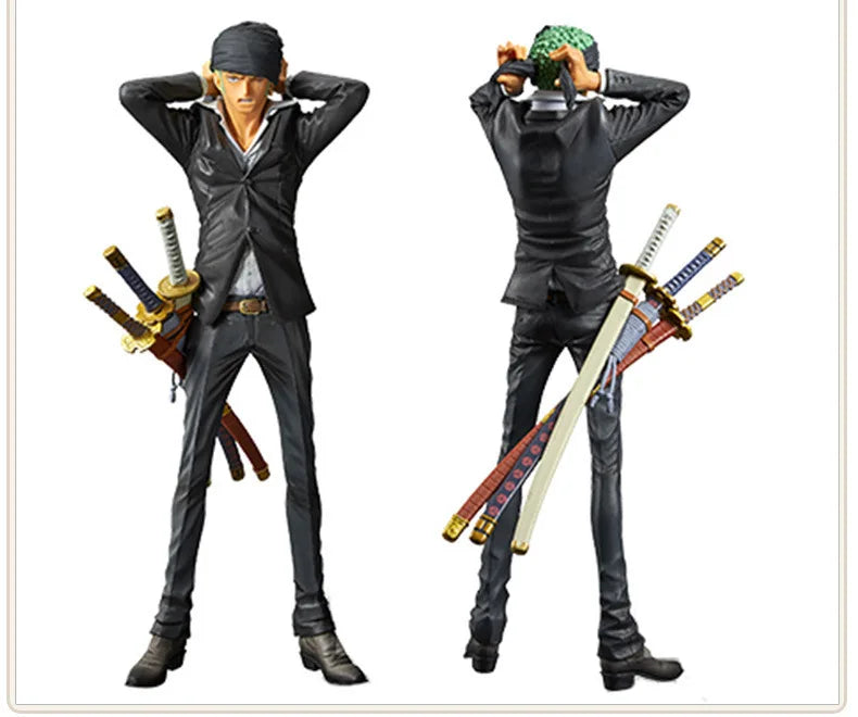 This figure captures Zoro in a dynamic battle-ready pose, with meticulous attention to detail—from the folds in his outfit to the sharpness of his swords. Crafted from durable PVC, this collectible ensures long-lasting quality while showcasing Zoro’s fierce spirit.