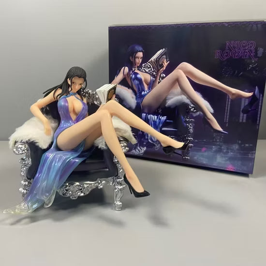 Beautiful Nico Robin figure seated elegantly on a sofa
