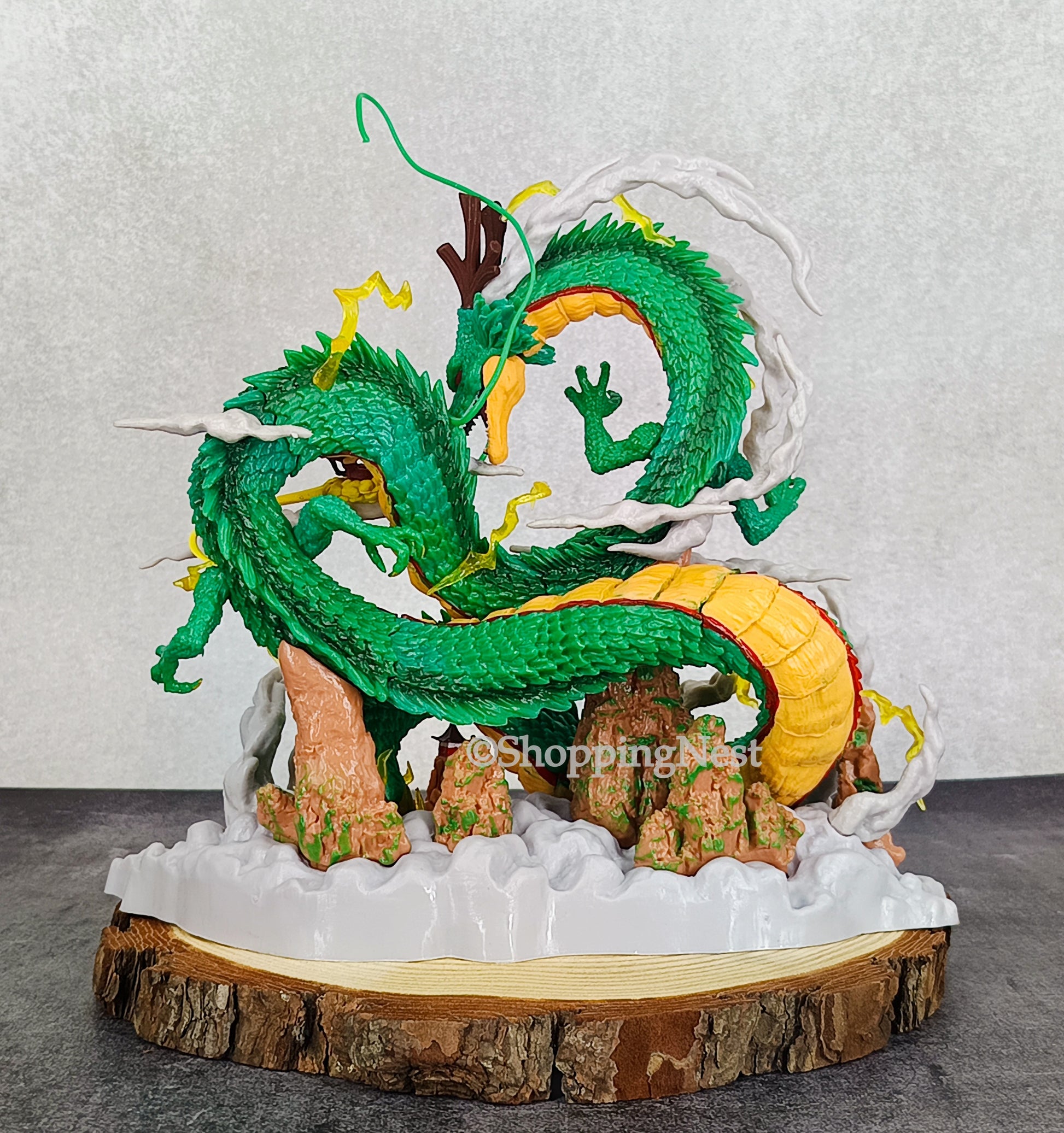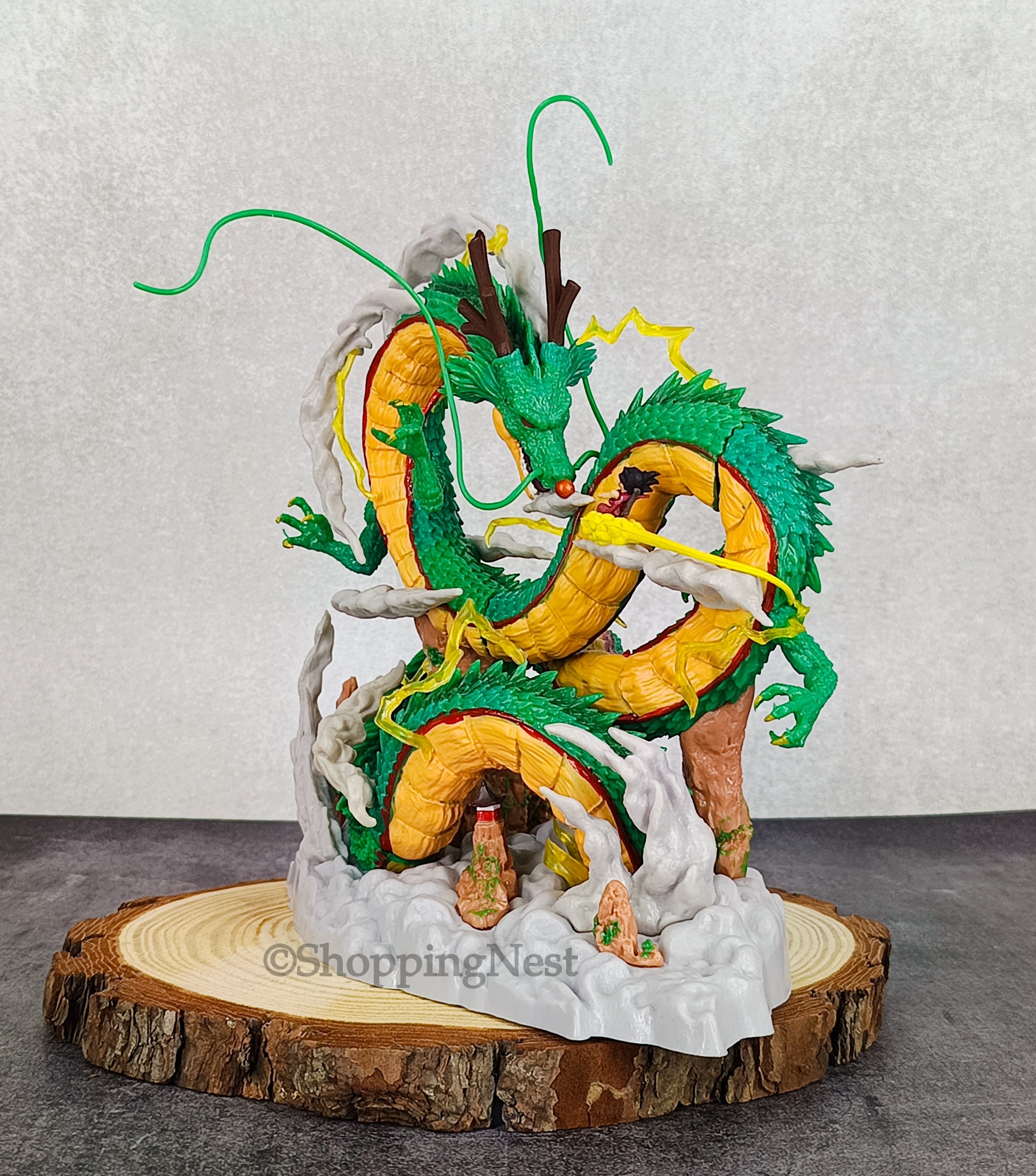 Product Description: Step into the world of Dragon Ball Z with this 25 cm Premium Shenron The Dragon With Kid Goku Figure, This collectible captures the mighty Shenron, the eternal dragon, coiled majestically around Kid Goku, symbolizing the start of Goku's epic journey. With intricate details and lighting features, this figure is a stunning addition for any Dragon Ball Z fan.