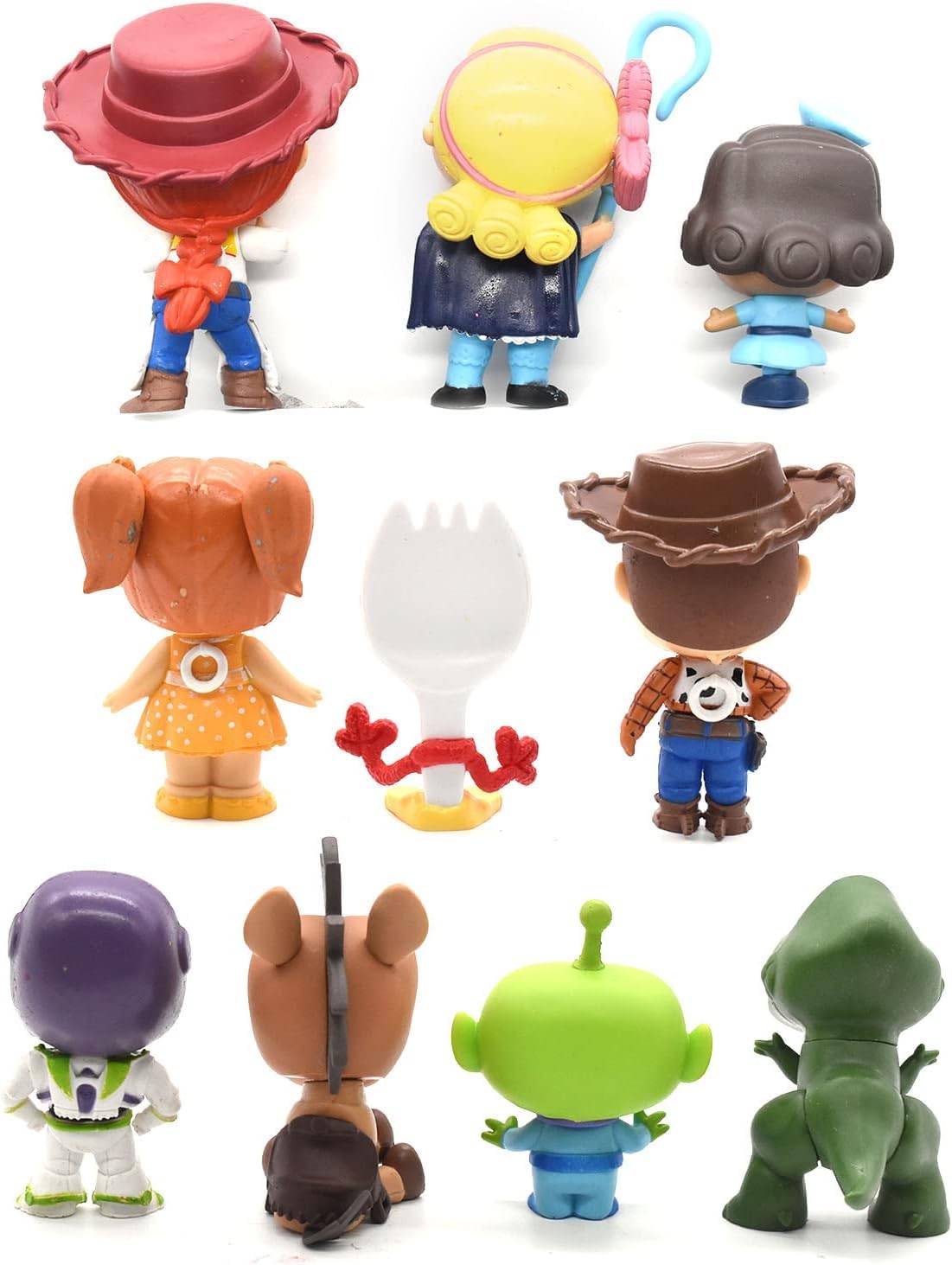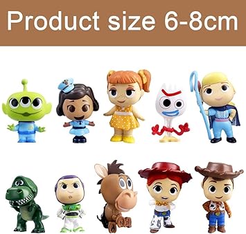 Each figure is crafted with attention to detail, highlighting the distinct features, colors, and expressions of Woody, Buzz Lightyear, Jessie, Rex, Forky, and other iconic characters. Made from durable PVC, these figures are designed to last, whether displayed on a shelf, desk, or used for imaginative play.