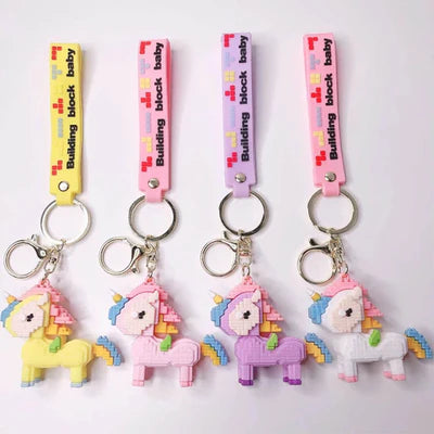 White Unicorn Lego Themed Keychain | 3D Lanyard Keychain | Silicone | Premium |
