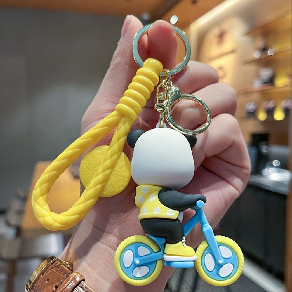 Yellow Panda On Cycle Keychain | 3D Lanyard Keychain | Silicone | Premium |